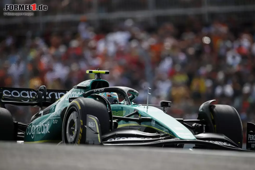 ... Sebastian Vettel, der mit Aston Martin sensationell in den vorderen Punkterängen liegt, nach einem sehr guten Start von P10. Dann aber klemmt das linke Vorderrad und Vettel fällt weit zurück, erobert zwei Kurven vor Schluss aber noch P8 und wird "Fahrer des Tages" in Austin. Leer aus geht ...
