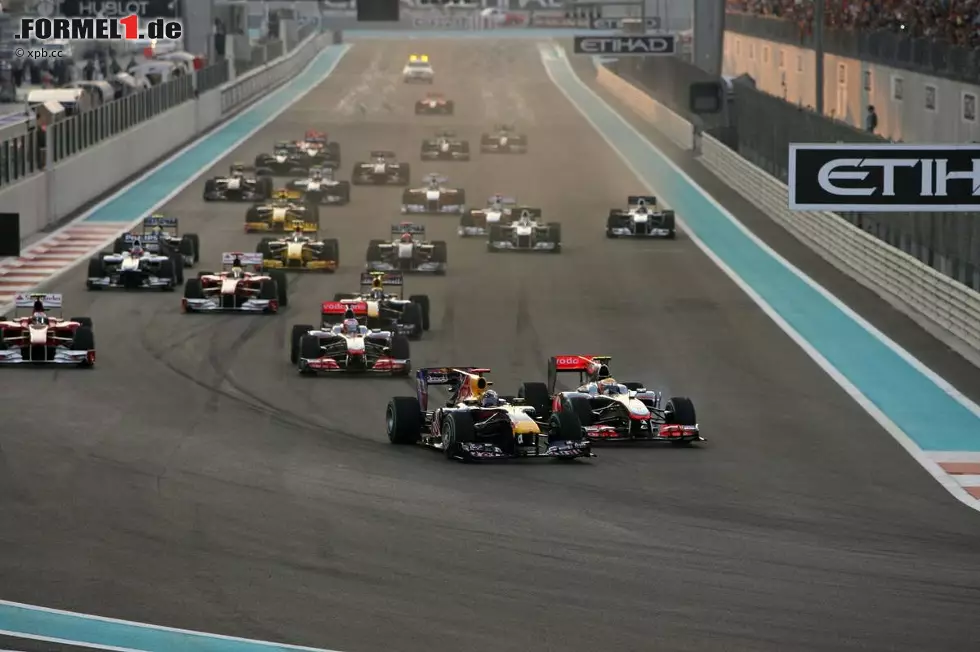 WM-Showdown in Abu Dhabi: Sebastian Vettel gewann das Qualifying und machte auch in der ersten Kurve alles richtig, knallte Lewis Hamilton entschlossen die Tür zu. Von da an ließ er nichts mehr anbrennen und gewann das Rennen souverän. Fernando Alonso wurde nur Siebter, Mark Webber Achter.