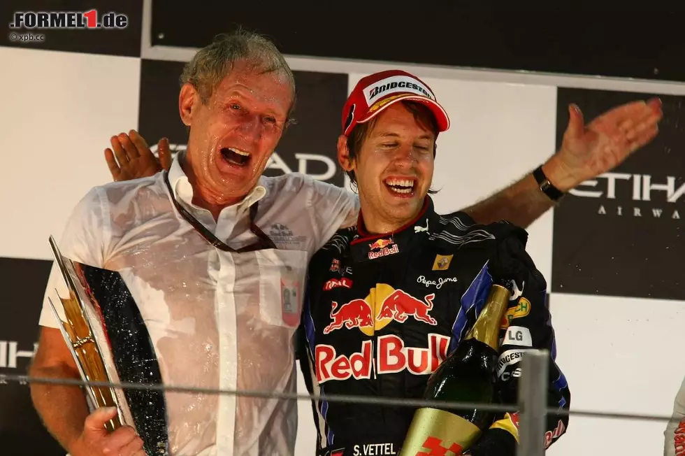 Mit Vettel auf dem Podium: Sein Mentor Helmut Marko. Der Österreicher meinte anschließend: "Es hat der würdigste Mann gewonnen. Und an all die Besserwisser wegen Stallregie: Das, was wir gemacht haben, ist aufgegangen!"
