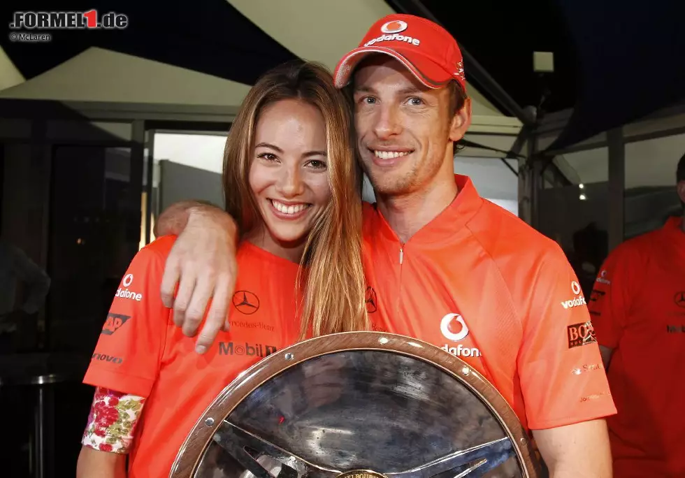 Die beiden sind rundum glücklich: Jessica Michibata, ein japanisch-argentinisches Unterwäschemodel, und ihr Jenson Button, amtierender Weltmeister und mit Siegen 2009 und 2010 der neue "Mister Melbourne" der Formel 1 (nicht nur auf der Rennstrecke, wie unsere weiblichen Leser finden). Nach seinem Sieg wurde Button gefragt, was der Ausspruch "Yata" zu bedeuten hatte, den er in den Boxenfunk plärrte: "Das heißt so viel wie 'Ich habe es geschafft'. Es ist Japanisch, Jessica kommt ja aus Japan. Sie hat mir das beigebracht", klärte der McLaren-Fahrer auf.