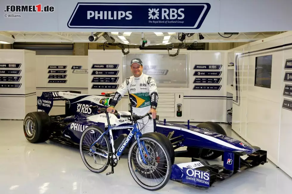... und Motorenhersteller Cosworth schenkte "Rubinho", der seine Familie inklusive Ehefrau Silvana ("Ich hasse das - warum können wir nicht wie alle anderen in einem Hotel schlafen?") übrigens am Campingplatz übernachten ließ, ein Fahrrad.