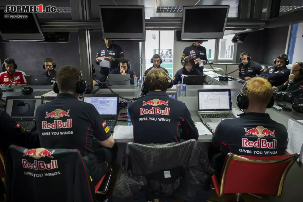 Backstage: Im Ingenieurs-Büro des Toro-Rosso-Teams tüfteln bis zu 20 Mitarbeiter des Teams gemeinsam mit den Fahrern daran, wie man das Setup des Autos verbessern könnte.
