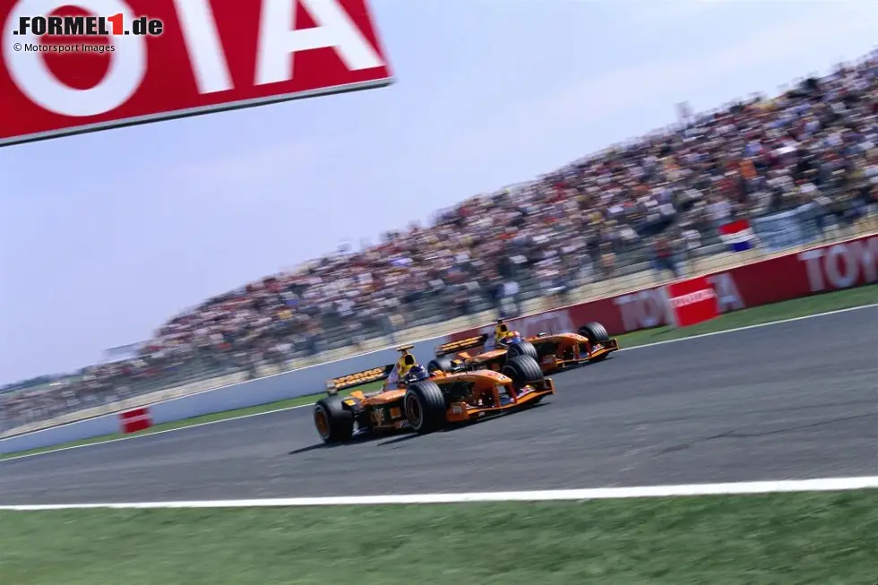 7. Arrows 2002 - 2 Punkte (20 Prozent): Wie Minardi und Toyota hatte Arrows zwei Zähler auf dem Konto, dank zweier sechster Plätze von Heinz-Harald Frentzen in Barcelona und Monaco. Doch das genügte nicht: Nach dem Großen Preis von Deutschland sperrte der langjährige Rennstall für immer zu.