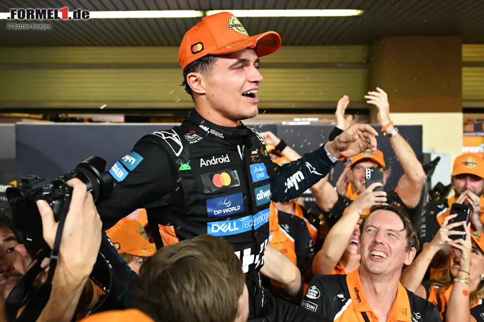 Lando Norris hat es geschafft: Der McLaren-Pilot ist Formel-1-Weltmeister 2025. Der Brite holte dabei 423 von 648 möglichen Punkten - also 65,28 Prozent. Damit liegt er unter allen Weltmeister-Saisons auf Platz 48 der größten Ausbeute. In unserer Fotostrecke wollen wir uns einmal den Top 10 dieser Liste widmen.