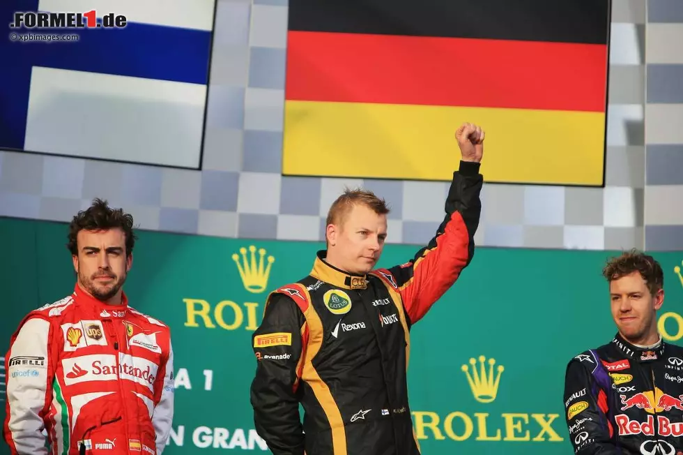 Fernando Alonso (Ferrari), Sebastian Vettel (Red Bull) und Kimi Räikkönen (Lotus)