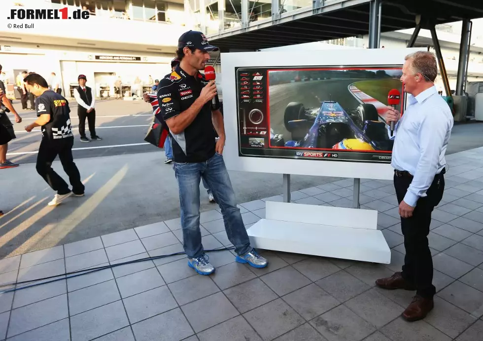 Mark Webber (Red Bull) analysiert seine Pole-Runde mit Johnny Herbert