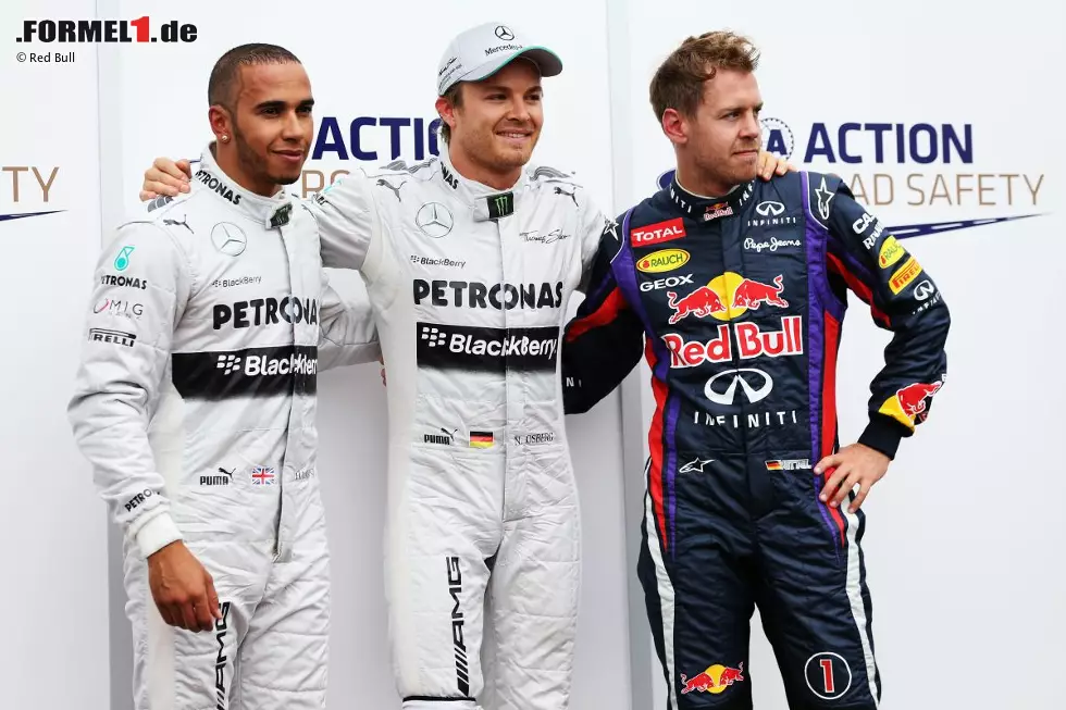 Nico Rosberg (Mercedes), Lewis Hamilton (Mercedes) und Sebastian Vettel (Red Bull)