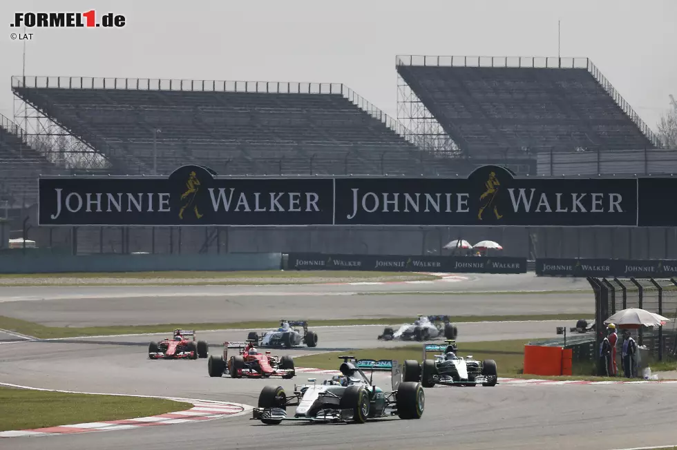 Lewis Hamilton (Mercedes), Nico Rosberg (Mercedes) und Sebastian Vettel (Ferrari)