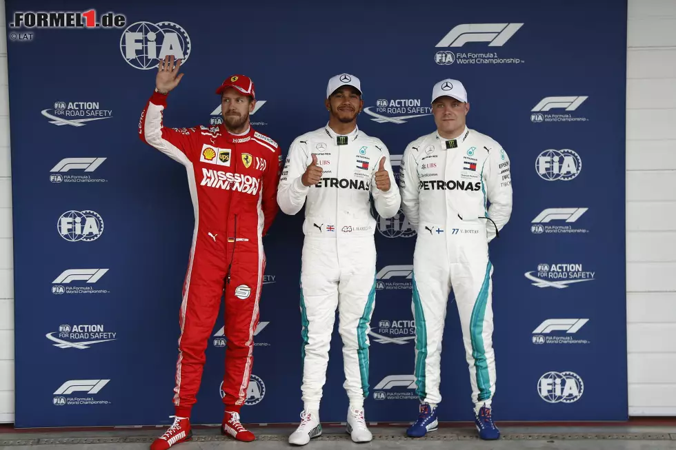 Sebastian Vettel (Ferrari), Lewis Hamilton (Mercedes) und Valtteri Bottas (Mercedes)