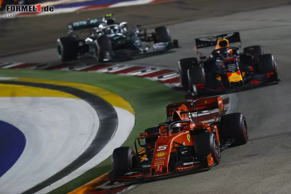 Sebastian Vettel (Ferrari), Max Verstappen (Red Bull) und Valtteri Bottas (Mercedes)