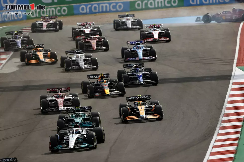 George Russell (Mercedes), Sebastian Vettel (Aston Martin), Lando Norris (McLaren), Valtteri Bottas (Alfa Romeo) und Carlos Sainz (Ferrari)