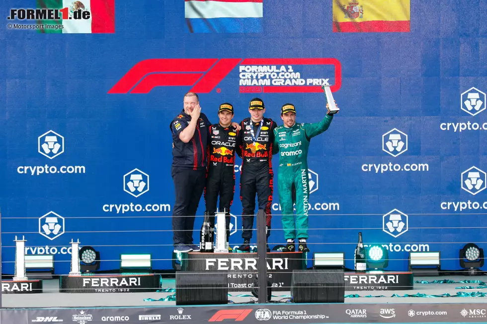 Max Verstappen (Red Bull), Sergio Perez (Red Bull) und Fernando Alonso (Aston Martin)