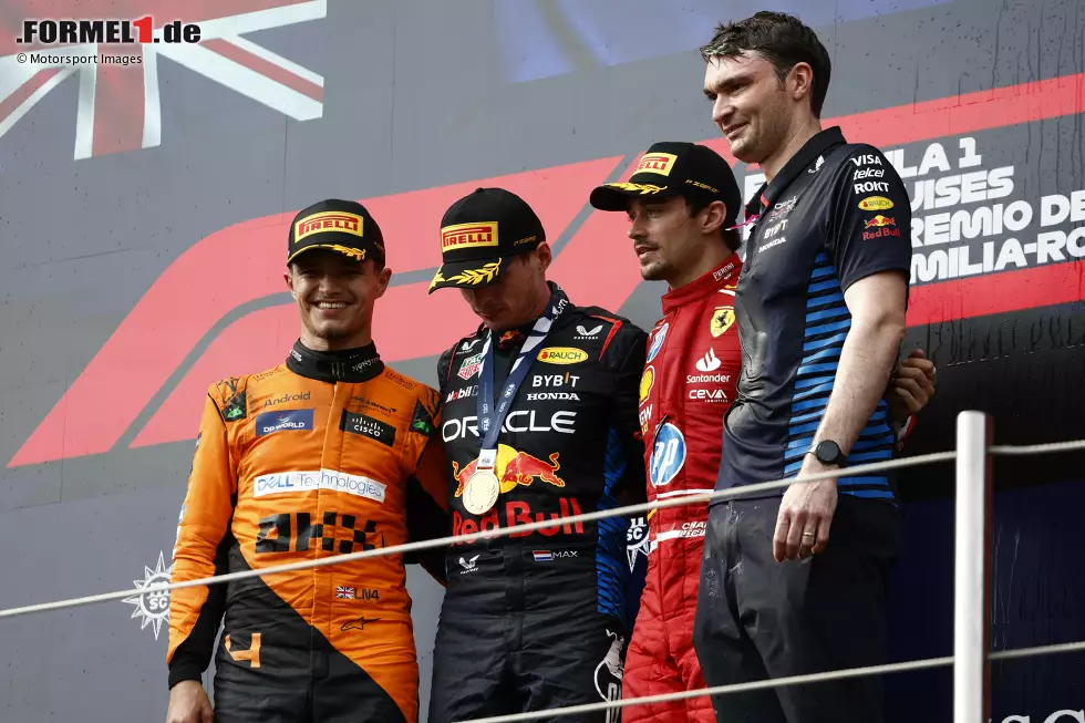 Lando Norris (McLaren), Max Verstappen (Red Bull) und Charles Leclerc (Ferrari)