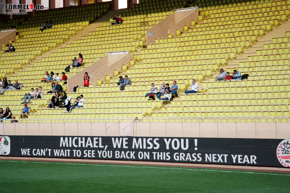 Im Stadion wurde eine Werbebande mit dem Spruch "Michael, wir vermissen dich! Wir können es nicht erwarten, dich nächstes Jahr zurück auf diesem Rasen zu sehen". In der Vergangenheit lief der Deutsche als Kapitän des Formel-1-Teams auf. Bei der diesjährigen Auflage übernahm Ferrari-Pilot Fernando Alonso diese Rolle.