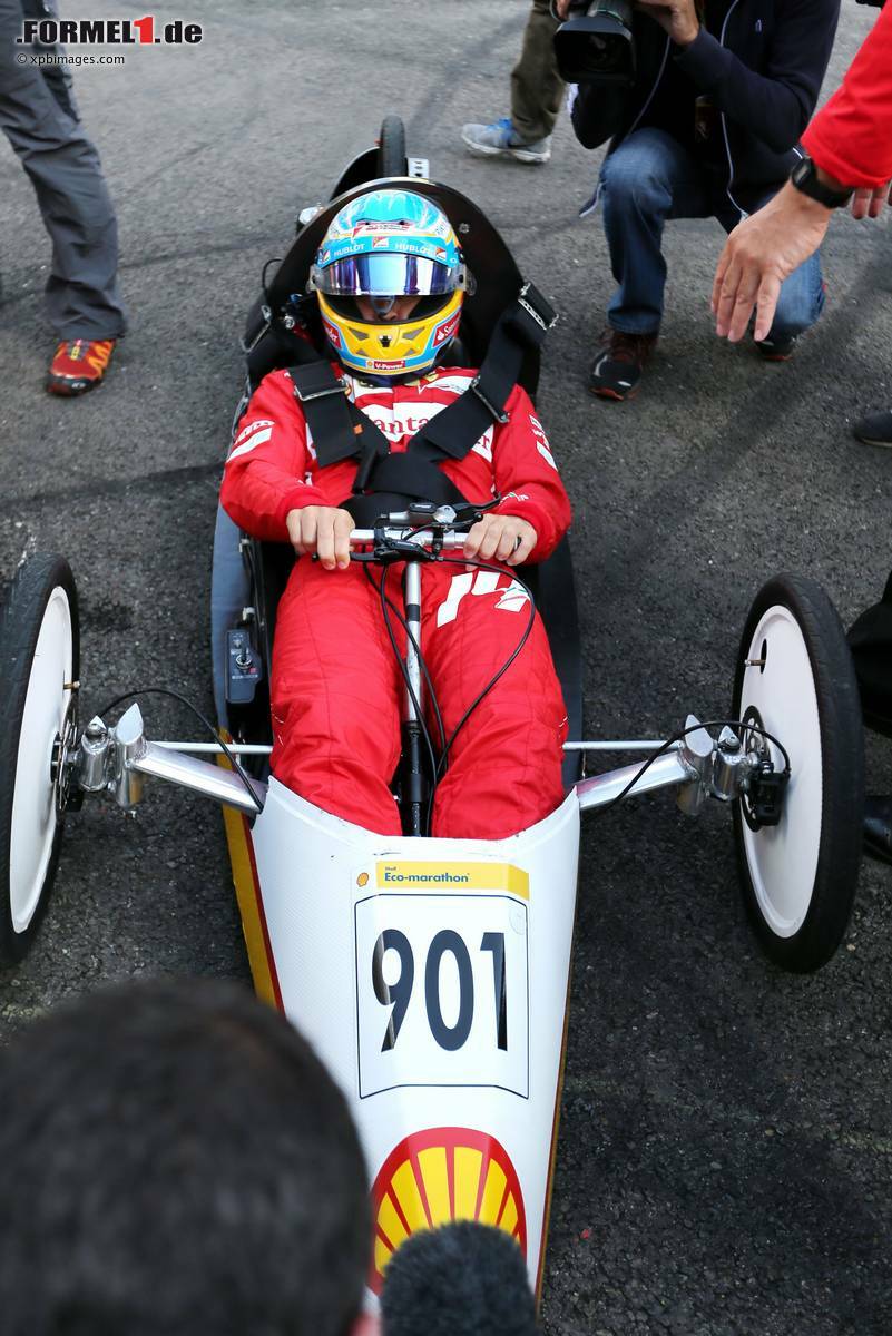 Über 3.000 Kilometer mit einem Liter Sprit - Die Shell Eco-Challenge zielt auf extreme Effizienz ab, wovon sich Fernando Alonso und Kimi Räikkönen überzeugen konnten