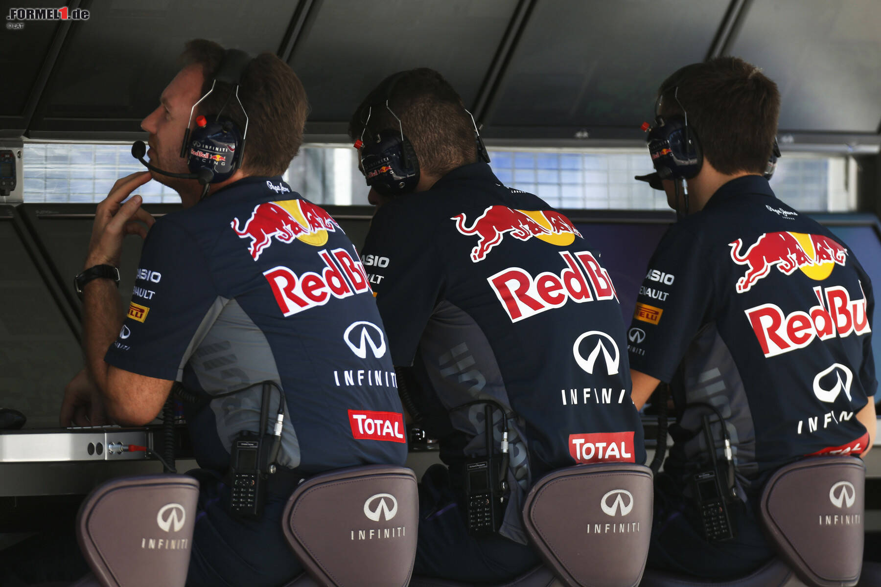 Der Platz neben dem Chefdesigner ist für Teamchef Christian Horner reserviert. Er steht regelmäßig in Kontakt mit beiden Piloten und ist außerdem für das Tagesgeschäft der Bullen verantwortlich. Sein Sitznachbar Guillaume Rocquelin war viele Jahre Renningenieur von Sebastian Vettel und ist mittlerweile zum Chef-Renningenieur aufgestiegen. Somit ist er nun für beide Piloten zuständig.