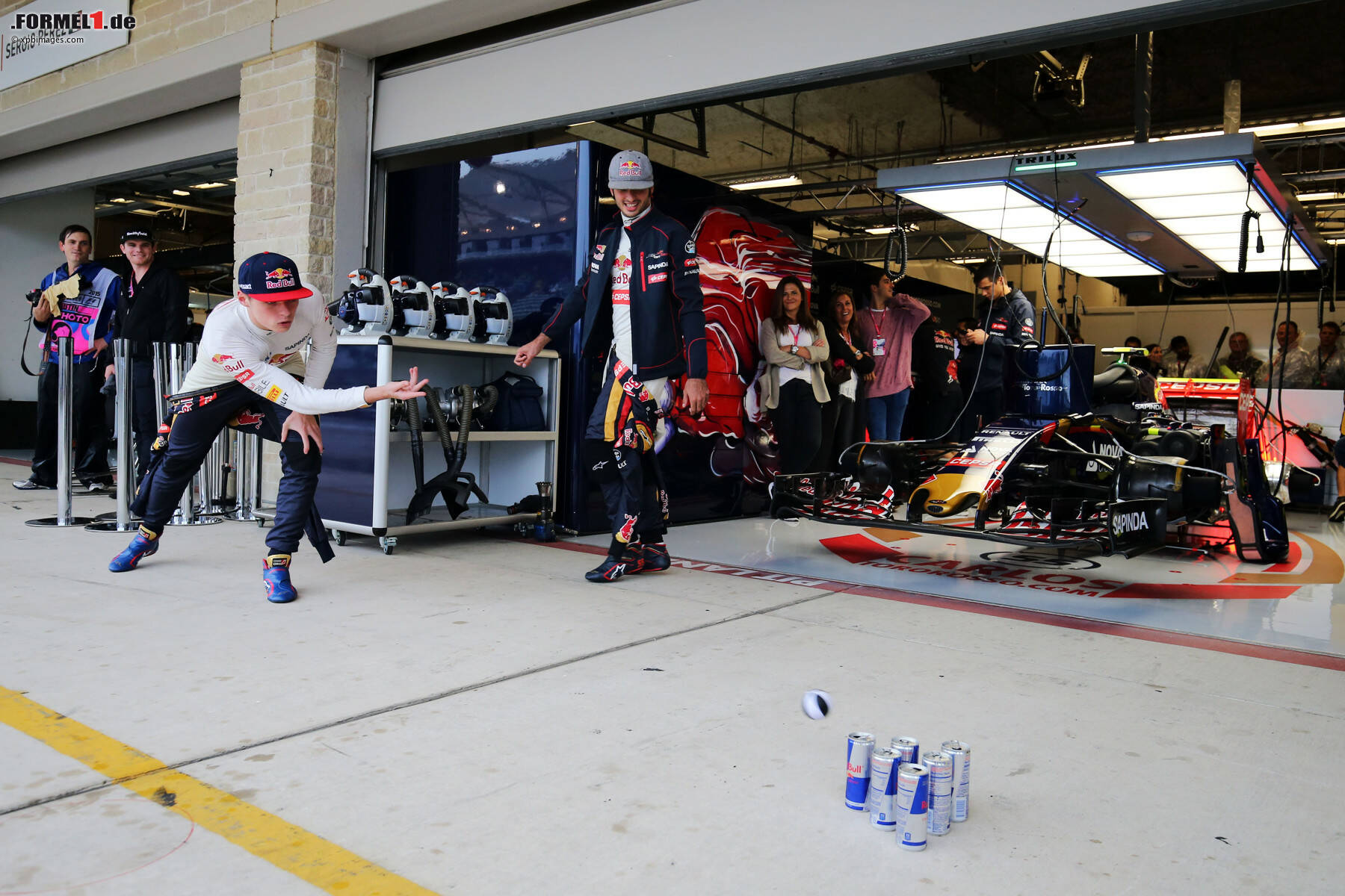 Die "Jungbullen" von Toro Rosso standen ihren Kollegen in nichts nach. Da wurde mit Dosen des hauseigenen Brausegetränks gebowlt, Max Verstappen bastelte sich sogar eine Angel - der Niederländer vermutete anscheinend Fische in den Sturzbächen, die sich in der Boxengasse den Samstag über gebildet hatten.