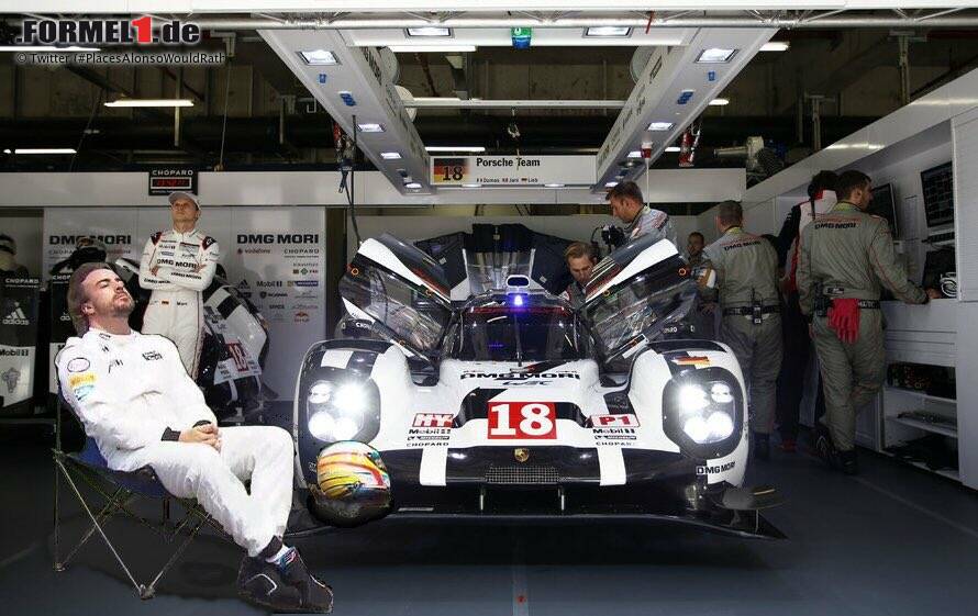 #PlacesAlonsoWouldRatherBe gehörte am Samstag zeitweise zu den meistgesuchten Hashtags auf Twitter, und das an einem Tag, an dem die Anschläge von Paris, der Syrien-Gipfel in Wien und das Zugunglück von Straßburg das Weltgeschehen dominierten. Die Idee ist simpel: Man nehme das Foto von Alonsos "Sonnenbad" nach dem Motorschaden, schneide es aus, kopiere es passend in einen anderen Hintergrund und poste es auf Twitter, Instagram & Co.