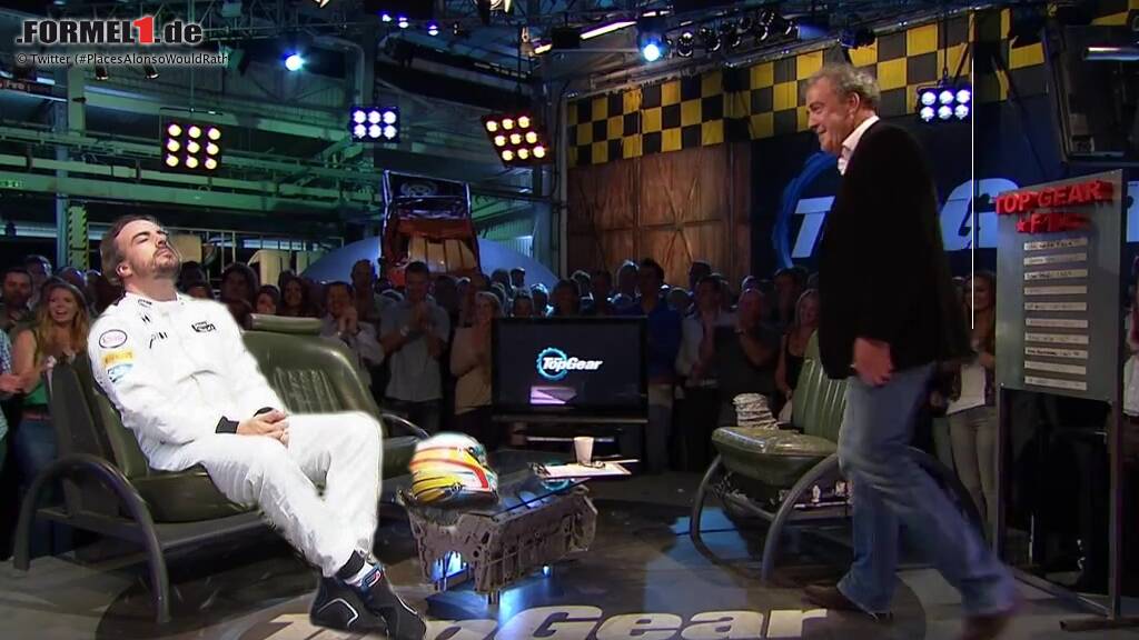 Was dabei herauskam, sind teilweise echte Schenkelklopfer. Etwa ein Alonso, der Sheldon Cooper aus der "Big Bang Theory" dessen berühmten Sitzplatz auf der Ledercouch wegnimmt, Alonso beim Zahnarzt, auf einer Mülldeponie, auf dem Mond oder auch in der Porsche-Box in Le Mans - eben überall, wo er gerade lieber wäre als bei McLaren-Honda.
