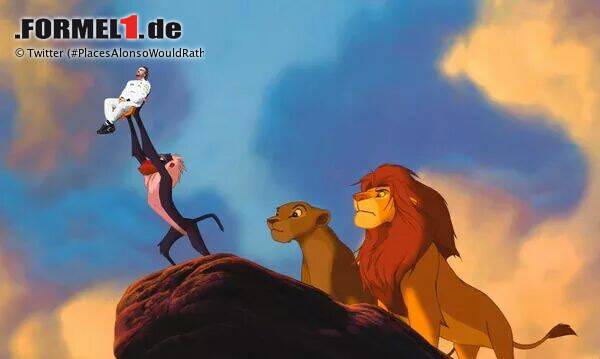 #PlacesAlonsoWouldRatherBe gehörte am Samstag zeitweise zu den meistgesuchten Hashtags auf Twitter, und das an einem Tag, an dem die Anschläge von Paris, der Syrien-Gipfel in Wien und das Zugunglück von Straßburg das Weltgeschehen dominierten. Die Idee ist simpel: Man nehme das Foto von Alonsos "Sonnenbad" nach dem Motorschaden, schneide es aus, kopiere es passend in einen anderen Hintergrund und poste es auf Twitter, Instagram & Co.