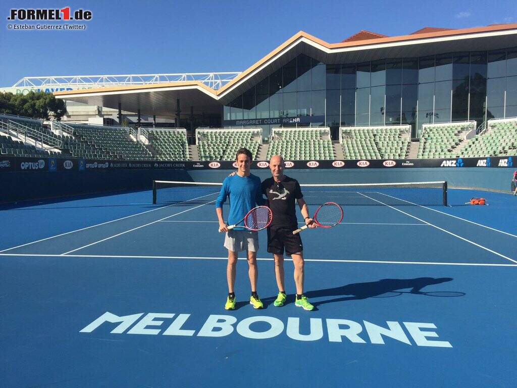 Während Felipe Massa seinen Bruder auf einem "normalen" Tennisplatz mit 6:0 vom Court fegt, legt Esteban Gutierrez seine Vorbereitung aufs Comeback eine Stufe professioneller an: Auf einem Nebenplatz der Rod-Laver-Arena wandelt er auf den Spuren von Australian-Open-Sieger Novak Djokovic.