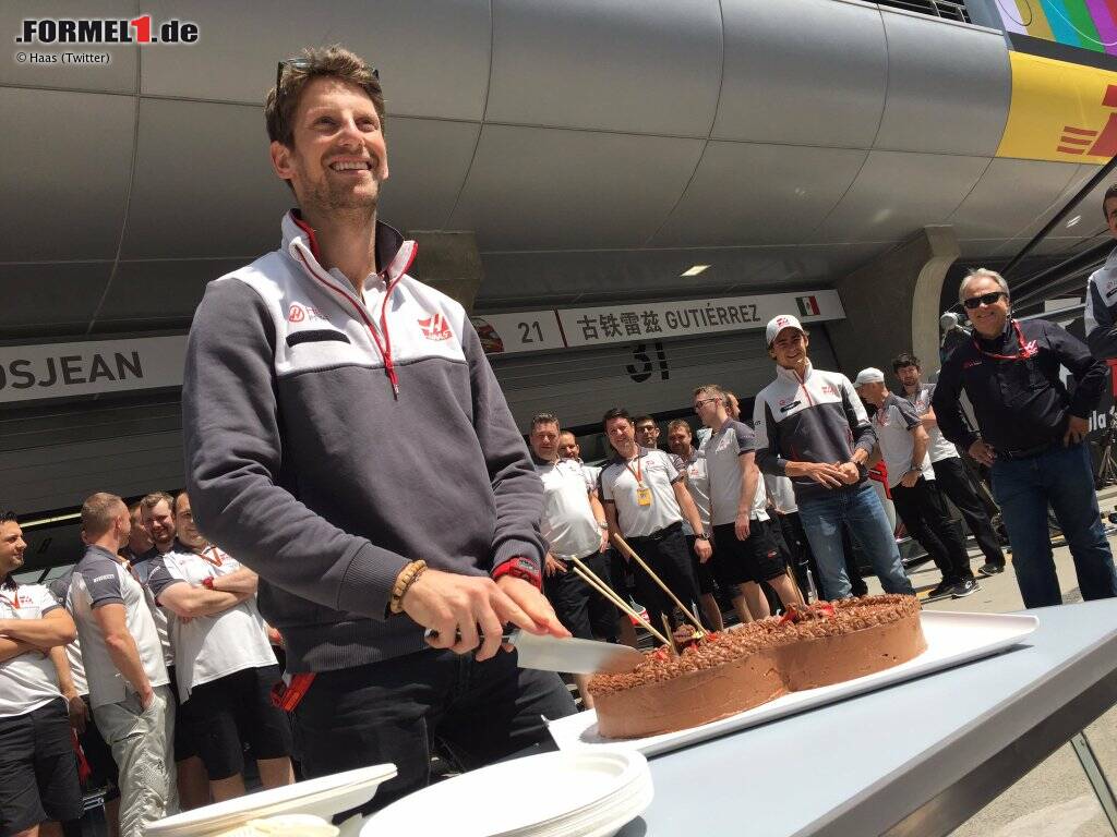Am Sonntagmorgen schneidet Romain Grosjean die Torte zu seinem 30. Geburtstag an. Ausgerechnet in Schanghai schreibt er aber die erste Null seiner Saison 2016 an. Der Haas-Teamleader ärgert sich über die Kollision in der ersten Kurve: "Dummer Ericsson!"