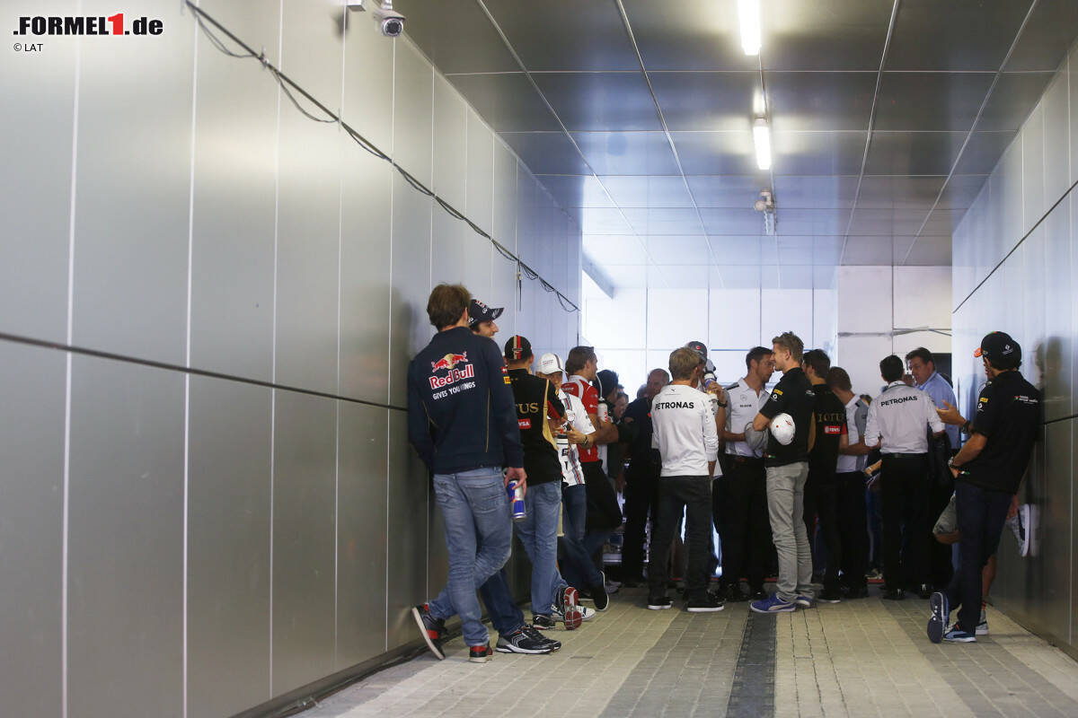Stars in der Manage: Bevor sie die Showbühne betreten und bei der Fahrerparade den Fans präsentiert werden, nutzen Lewis Hamilton & Co. die Gelegenheit, um noch ein paar Minuten miteinander zu plaudern. Das gibt's in der modernen Formel 1 ohnehin nur noch selten.