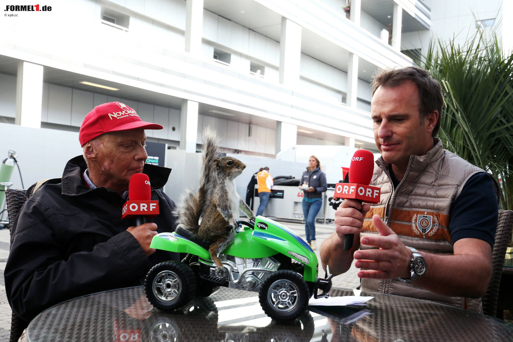 Am Freitag in Sotschi tauchte in der Mercedes-Hospitality dann überraschend ein großes Paket auf, von Ecclestone an Lauda. Darin enthalten: ein (echtes!) ausgestopftes Eichhörnchen auf einem ferngesteuerten Quad, das freilich nicht mehr funktioniert. Eine späte Retourkutsche für die Newman-Platte?