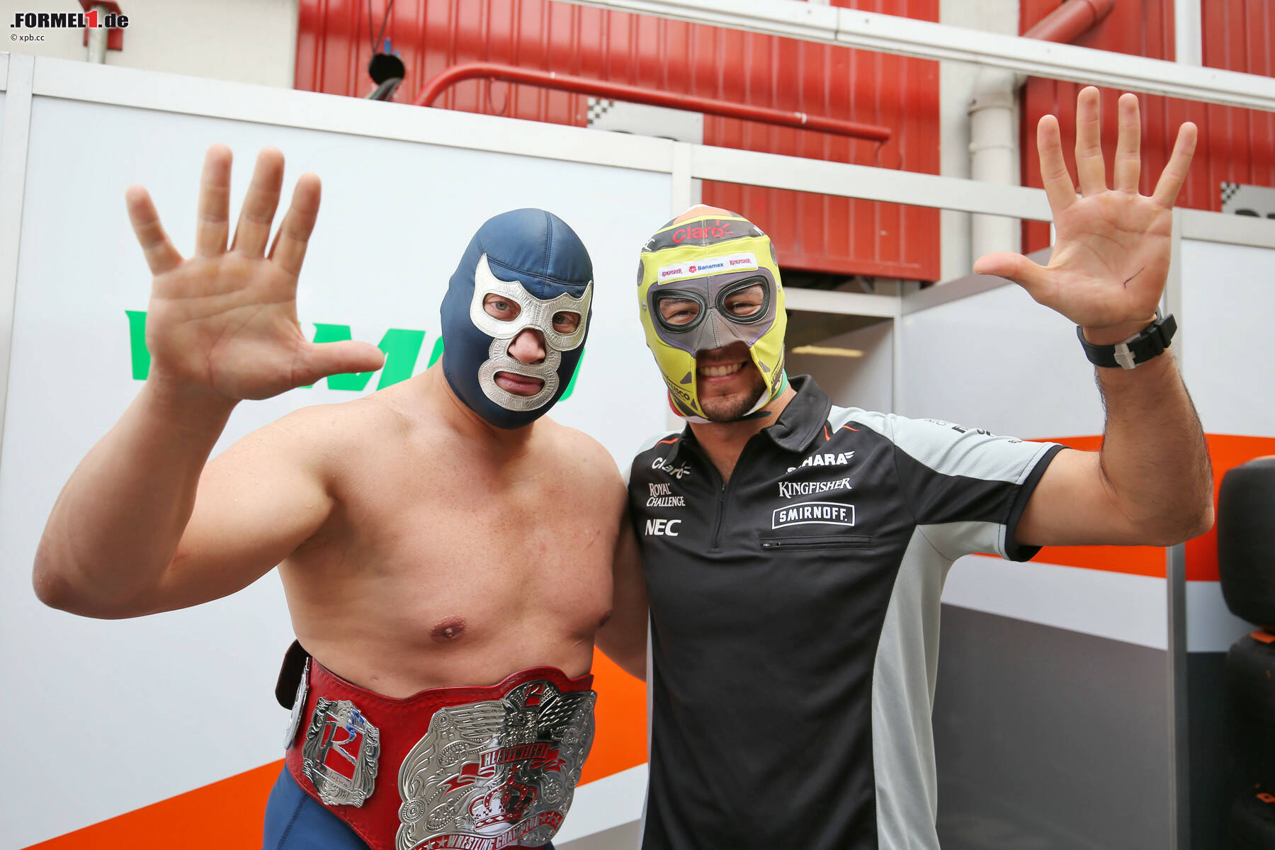 Und Foto 11 zeigt diesmal, wie die Force-India-Mechaniker Nico Hülkenberg Mut machen - was man durchaus auch als zweifelhafte Anspielung verstehen könnte...