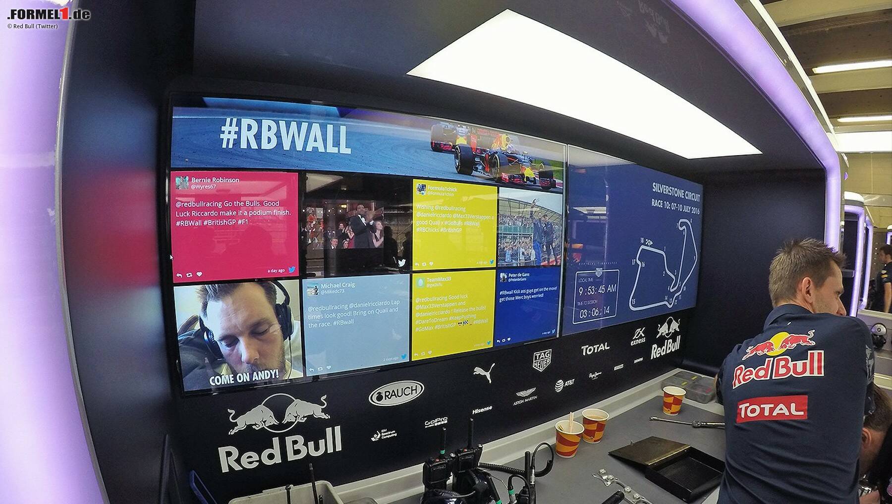 In unserer Fotostrecke "F1 Backstage" beschäftigen wir uns aber auch mit anderen Aspekten des Silverstone-Wochenendes. Etwa dem Red-Bull-Team beim Tontaubenschießen (Foto 2), Johnny Herberts Sturz mit dem "Hoverboard" (Foto 7), der Reunion der Spice Girls (Foto 9) oder einer neuen Twitter-Innovation in der Red-Bull-Box (Foto 15).