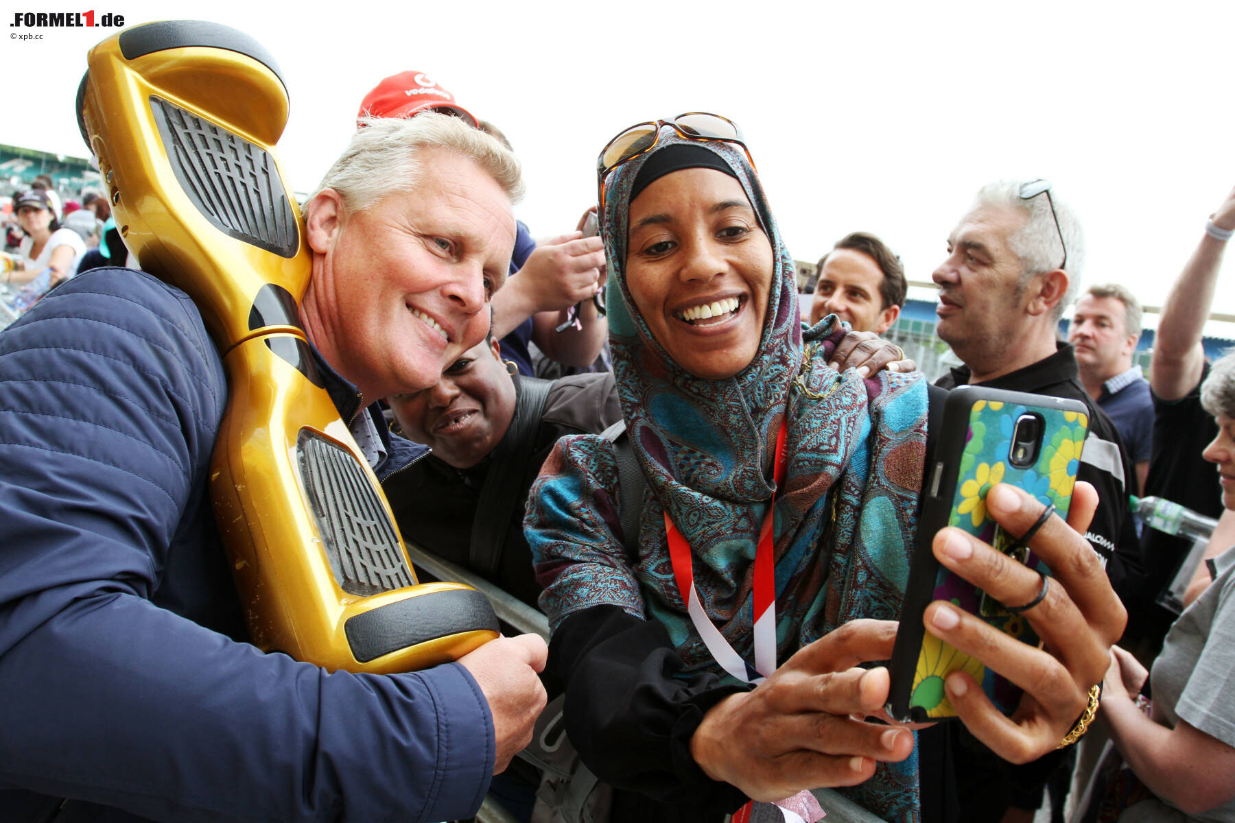 In unserer Fotostrecke "F1 Backstage" beschäftigen wir uns aber auch mit anderen Aspekten des Silverstone-Wochenendes. Etwa dem Red-Bull-Team beim Tontaubenschießen (Foto 2), Johnny Herberts Sturz mit dem "Hoverboard" (Foto 7), der Reunion der Spice Girls (Foto 9) oder einer neuen Twitter-Innovation in der Red-Bull-Box (Foto 15).