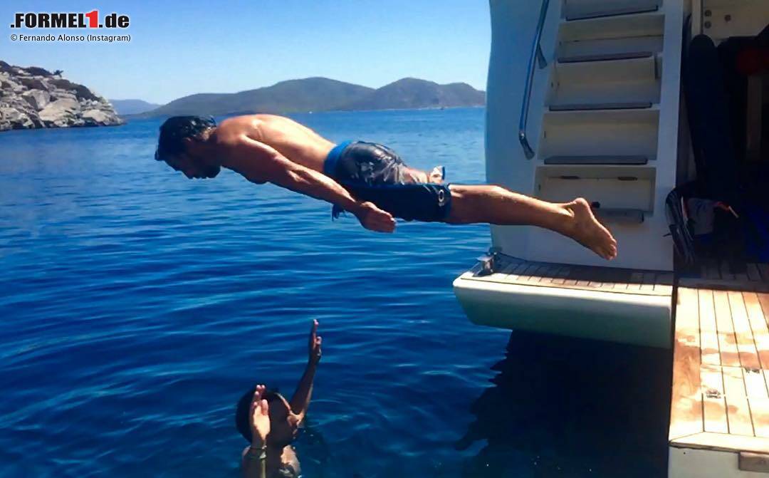 Platz 6: Perfekt getimt - Dass Fernando Alonso den einen oder anderen Kartentrick beherrscht, ist im Fahrerlager bekannt. Wie weit seine magischen Fähigkeiten aber gehen können wurde erst klar, als er im Urlaub übers Wasser schwebte.