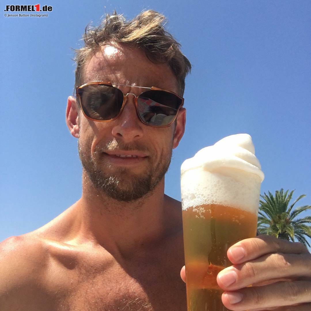 Platz 3: Männerurlaub - "Ich freue mich auf den Urlaub", kündigte Jenson Button schon vor den Ferien an. "Ich kann am Strand sitzen und ein Bier trinken ohne mich schuldig zu fühlen." Gesagt, getan. Der Weltmeister von 2009 steht eben zu seinem Wort.