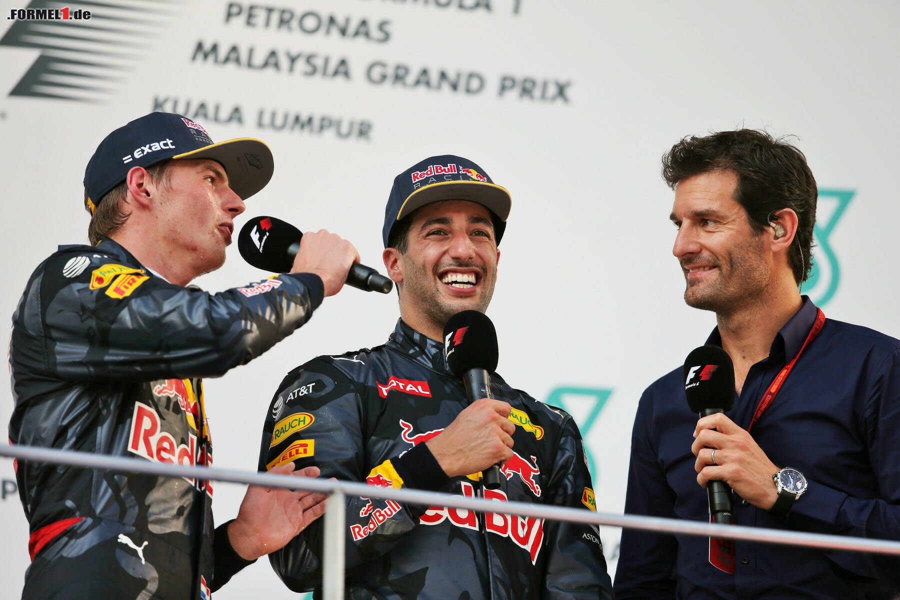 (Motorsport-Total.com) - Champagner aus einem verschwitzten Schuh zu süffeln wird offenbar salonfähig. Pardon, es wird zum guten Ton auf dem Formel-1-Podium. Daniel Ricciardo und seinem "Shoey" sei Dank. Auch beim Malaysia-Grand-Prix am Sonntag goss sich der Australier nach einem Ritus der "Mad Hueys" - einer US-amerikanischen Fischer- und Surferbande - wieder Edelbrause in seinen Rennstiefel und spülte sie genussvoll und lachend herunter. Alle mussten mitmachten - längst nicht jeder wollte.