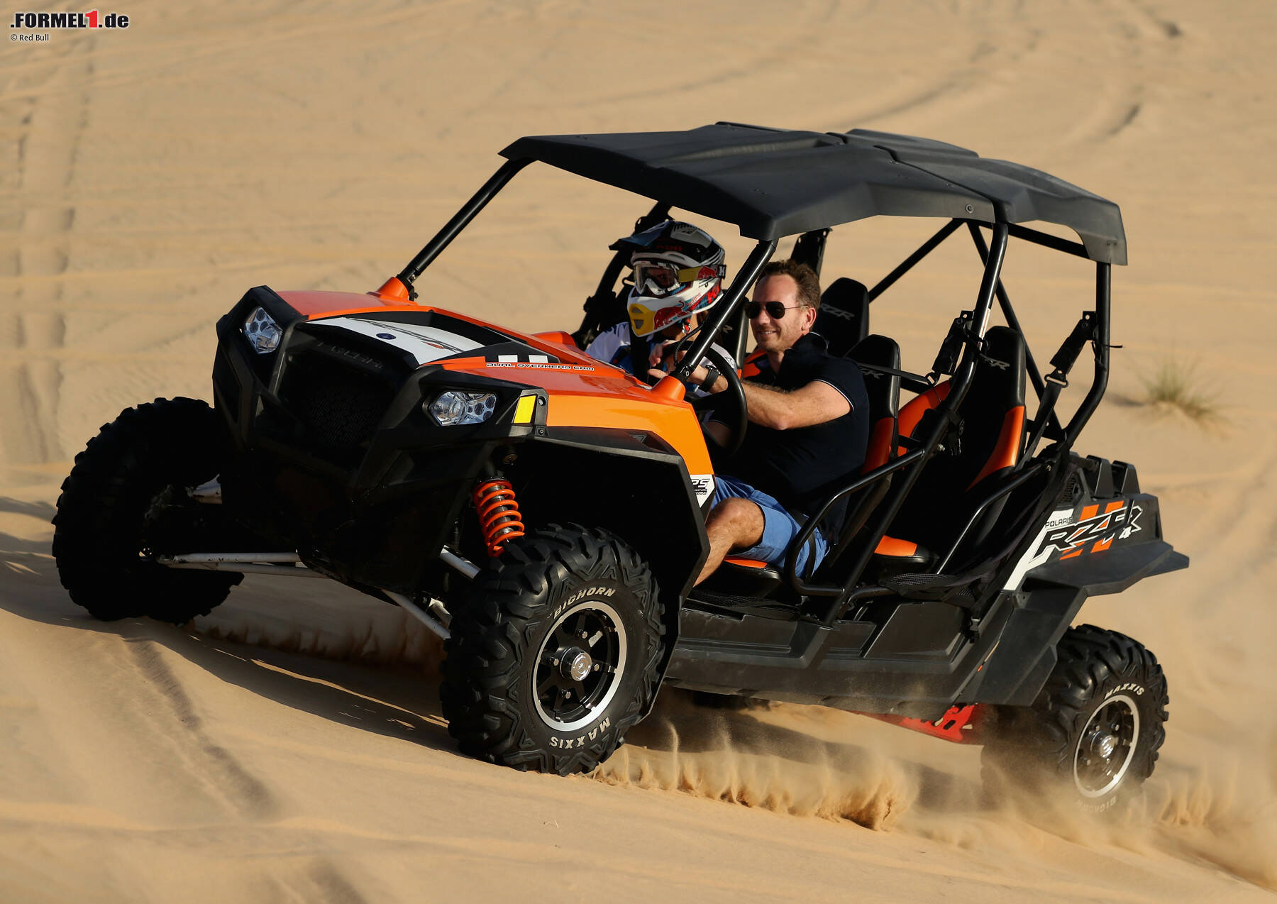 Für Red Bull war es das erste Mal, dass man den Grand Prix von Abu Dhabi nutzte, um die Wüste unsicher zu machen. Dabei liegt der Gedanke nahe, arbeitet man doch schon lange mit der österreichischen Motorradschmiede KTM zusammen, außerdem veranstaltet Red Bull im Golfstaat immer wieder Events. Mit dabei waren daher auch KTM-Sportmanager Heinz Kinigadner und Red-Bull-Sportler Sam Sunderland, der seine Erfahrungen von der Rallye Dakar an Ricciardo und dessen Teamkollegen Max Verstappen weitergab.
