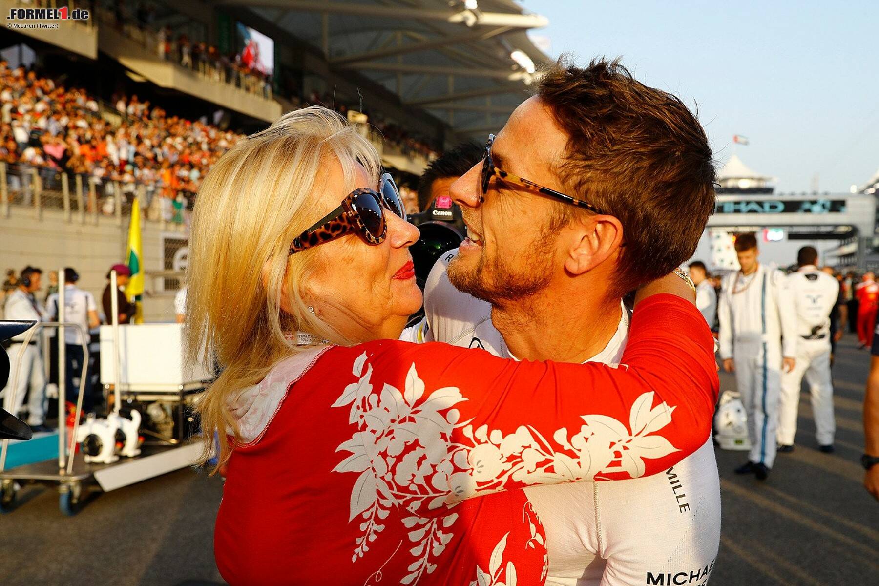 Regelrecht zelebriert hat Button seinen Abschied (Foto 5 bis 10), und zwar noch während das Rennen lief. Als er in eine TV-Show platzte, zeigte er sein Talent als Moderator - vielleicht die Zukunft für ihn? Daumendrücker waren beim letzten Rennen jedenfalls seine Mutter Simone und Model Brittny Ward.