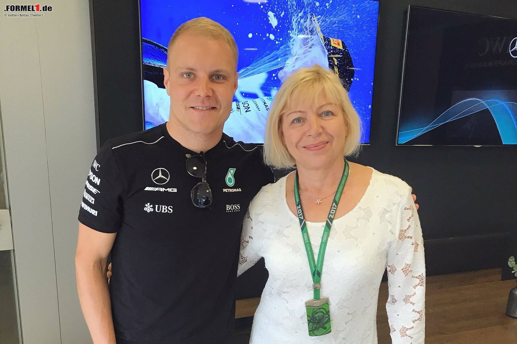Rosbergs Nachfolger Valtteri Bottas bringt seine Mutter zu seinem ersten Rennen als Grand-Prix-Sieger mit. Und nicht nur die: Ebenfalls dabei ist seine Frau Emilia, eine finnische Olympia-Schwimmerin.