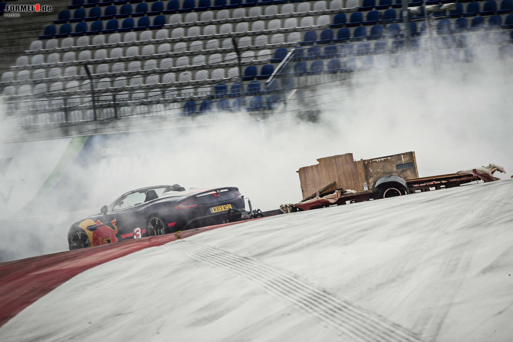 Verstappen kippt seinen Camper mit einem wilden Drift auf zwei Räder, später legt er ihn ganz auf die Seite, die Wohnwagen-Verkleidung verabschiedet sich. Nun macht auch Ricciardo Kleinholz, viel außer einem rollenden Boden bleibt nicht übrig. "Für die Camper ist die Action nicht so gut ausgegangen, aber für uns war es ein großer Spaß", erzähl der Australier mit seinem bekannten Grinsen im Gesicht.