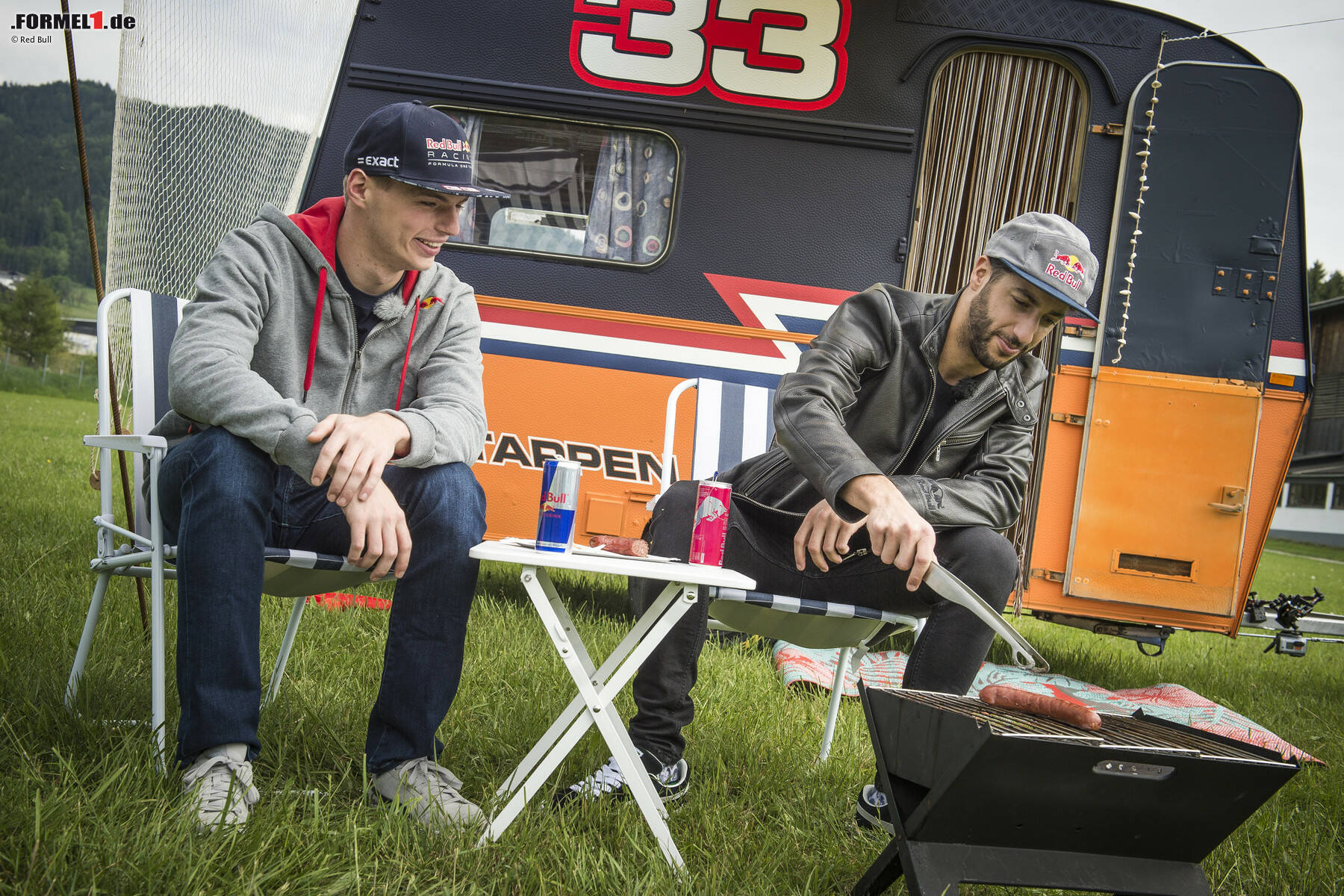 (Motorsport-Total.com) - Dass die Marketing-Strategen des Red-Bull-Konzerns gerne aufsehenerregende Wege beschreiten, ist hinlänglich bekannt. Die jüngste Promo-Aktion des Getränkeriesen für den Heim-Grand-Prix am Red-Bull-Ring in Österreich am 9. Juli sorgt jedoch nicht nur bei den Fans für Belustigung, sondern machte auch den Formel-1-Piloten Daniel Ricciardo und Max Verstappen einen Riesenspaß. Die beiden Fahrer lieferten sich in Spielberg ein heißes Wohnwagen-Duell - jede Menge Kleinholz inklusive.