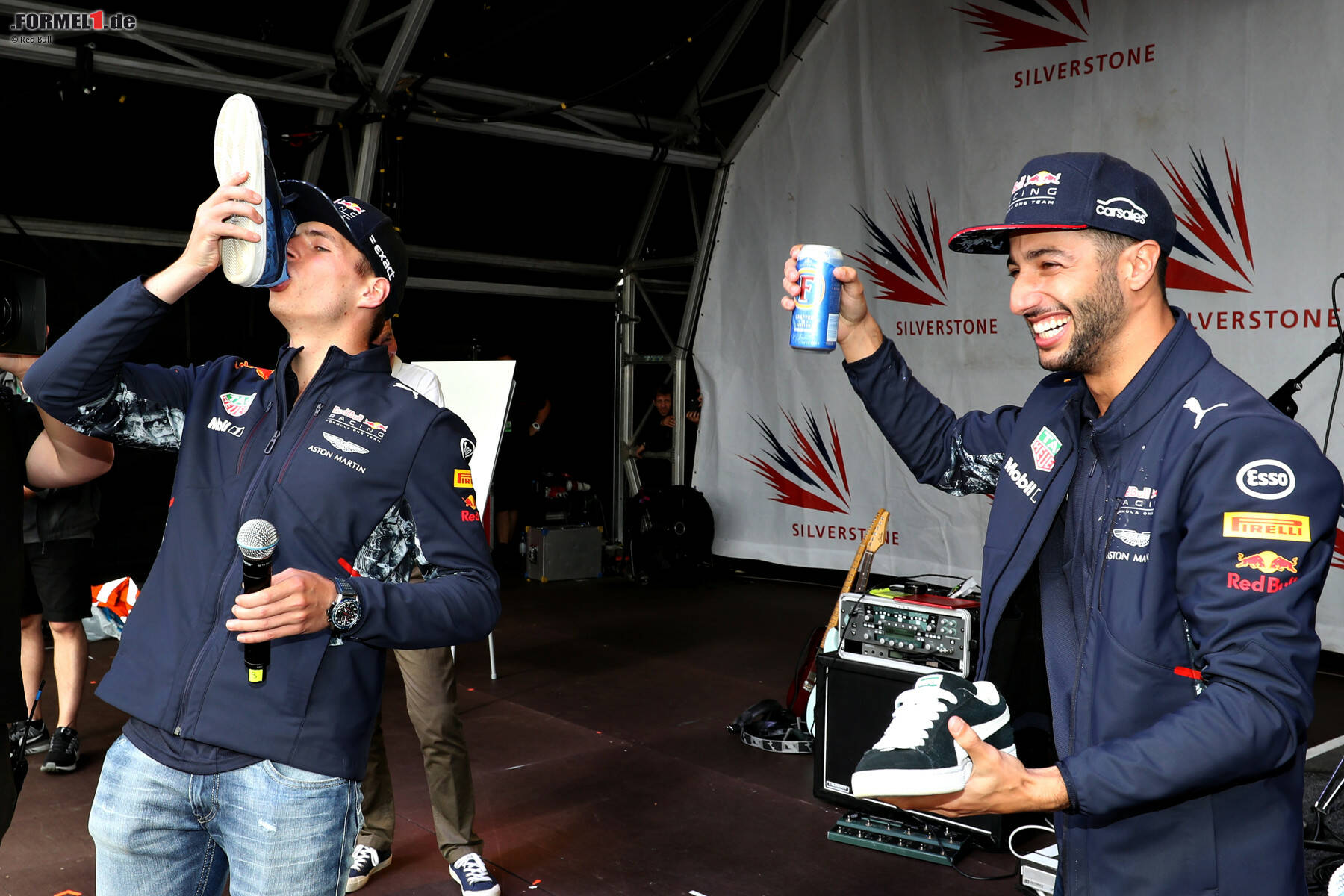 Weitere Einblicke hinter die Kulissen in Silverstone zeigen diesmal Sieger Lewis Hamilton beim Crowdsurfen (Foto 5), Daniel Ricciardos vielleicht (wirklich?) letzten "Shoey" (Foto 12) und eine Ansicht, um die sich die Ingenieure der Formel-1-Teams normalerweise reißen (Foto 11) ...