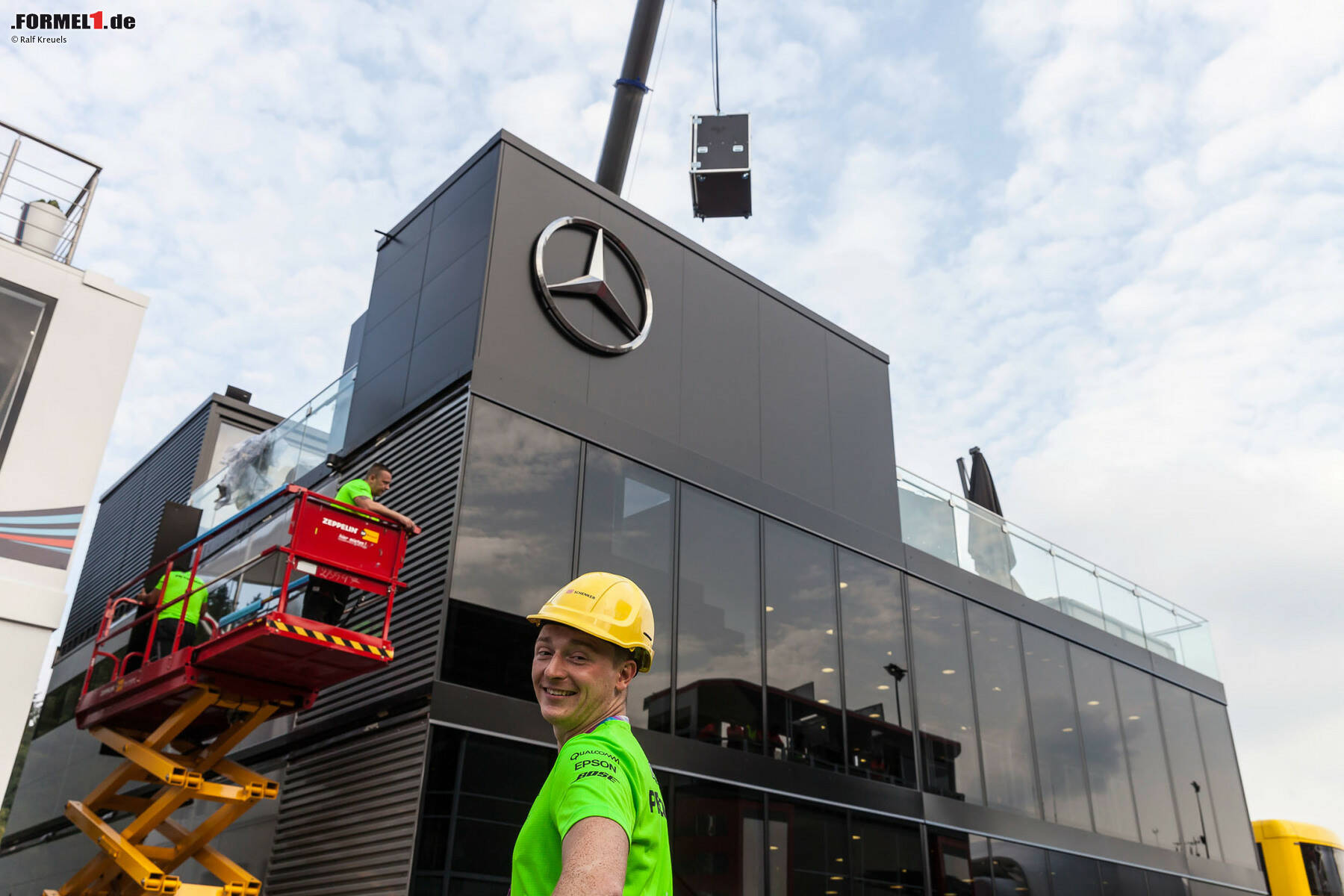 (Motorsport-Total.com) - DB Schenker ist als Official Logistics Supplier von Mercedes-AMG Petronas Motorsport für den Transport der beiden Mercedes F1 W08 EQ Power+ und den Auf- und Abbau des Mercedes Motorhomes bei allen europäischen Formel 1 Rennen zuständig. Und damit an den Rennwochenenden Lewis, Valtteri und das gesamte Mercedes-AMG Petronas Motorsport Team das Motorhome als Basis nutzen können, sorgt das Team von DB Schenker dafür, dass im Motorhome alles glatt läuft.