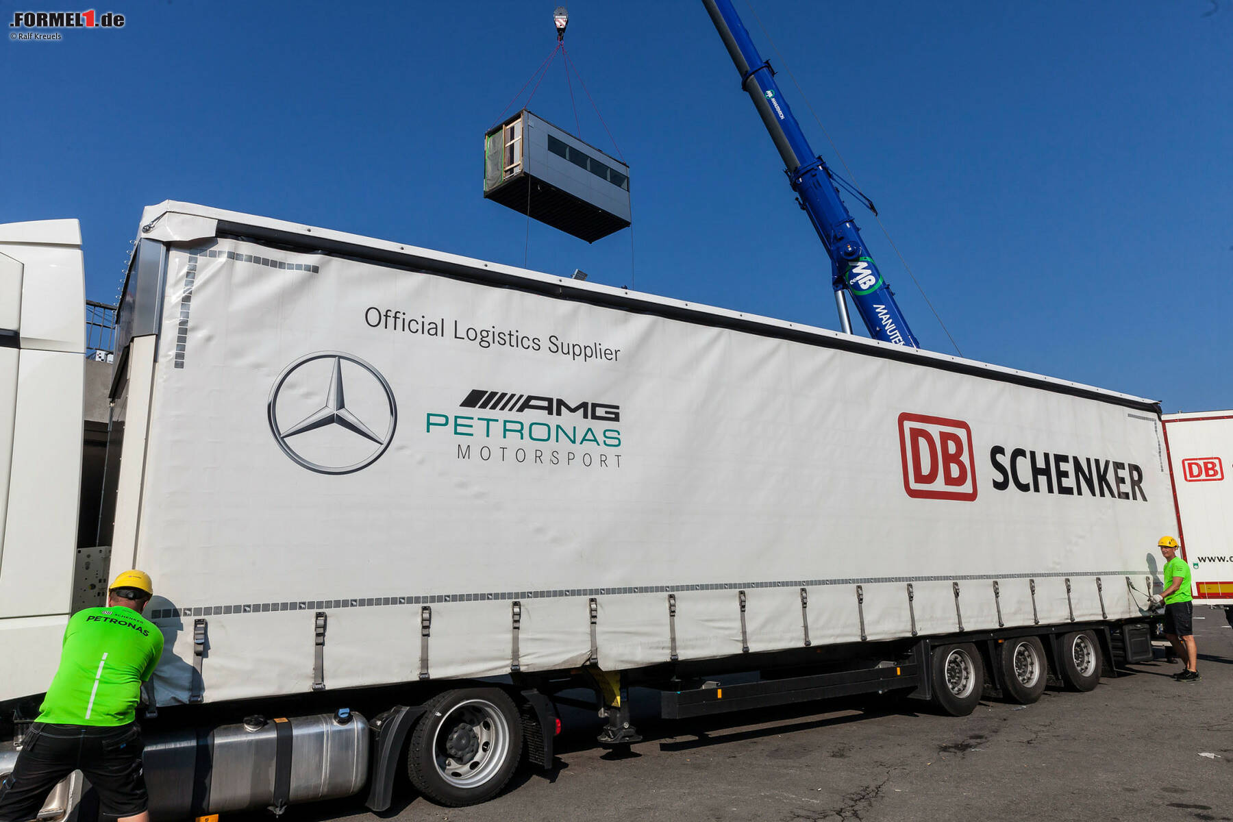 (Motorsport-Total.com) - DB Schenker ist als Official Logistics Supplier von Mercedes-AMG Petronas Motorsport für den Transport der beiden Mercedes F1 W08 EQ Power+ und den Auf- und Abbau des Mercedes Motorhomes bei allen europäischen Formel 1 Rennen zuständig. Und damit an den Rennwochenenden Lewis, Valtteri und das gesamte Mercedes-AMG Petronas Motorsport Team das Motorhome als Basis nutzen können, sorgt das Team von DB Schenker dafür, dass im Motorhome alles glatt läuft.