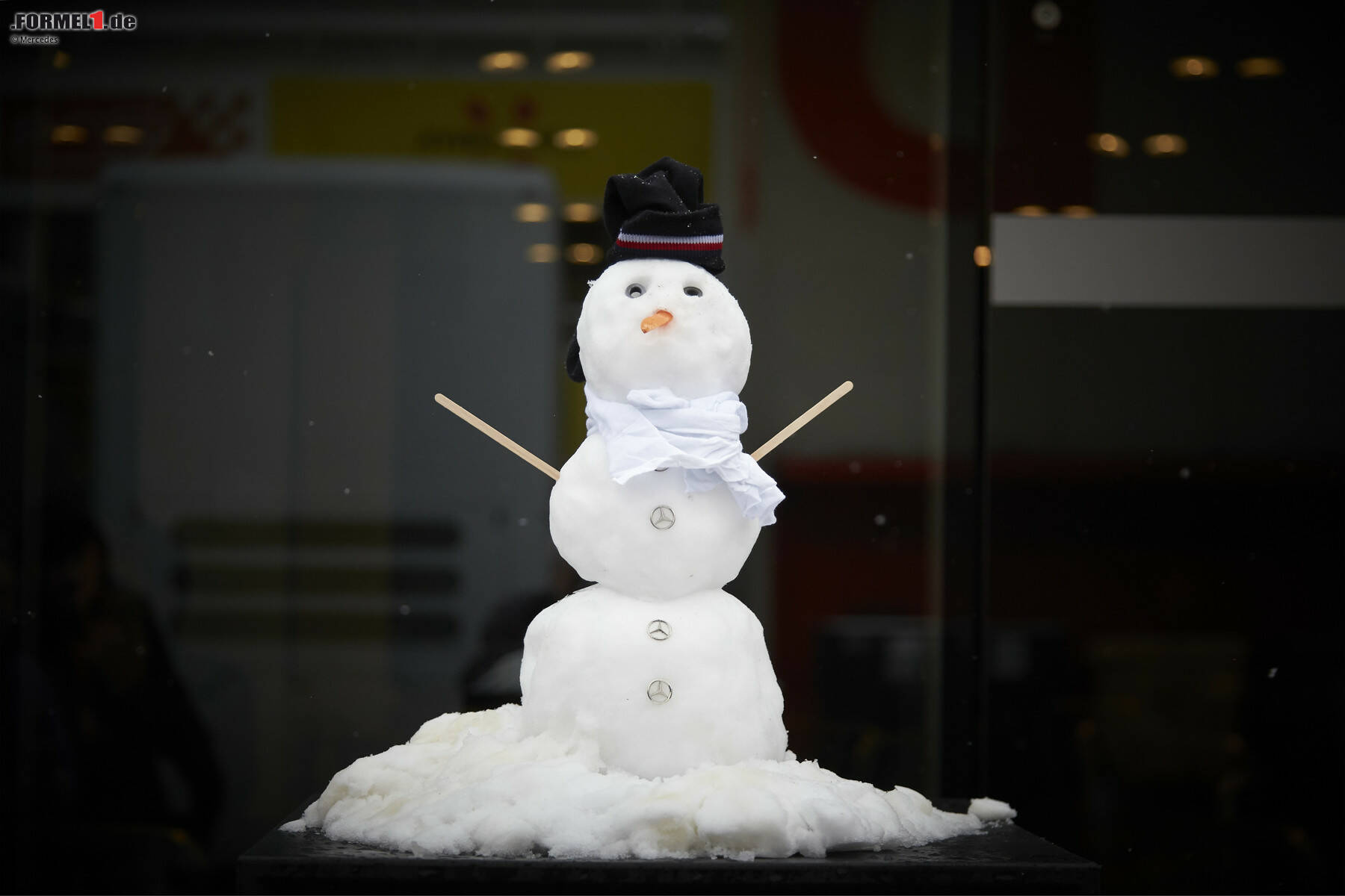 (Motorsport-Total.com) - Das Mercedes-Team bedauert zwar, dass der dritte Testtag in Barcelona komplett dem frostigen Winterwetter zum Opfer fiel, beweist aber im Umgang mit der Situation Humor. Denn die findigen Silberpfeil-Mechaniker konnten nicht ihre Finger davon lassen, irgendetwas "Sinnvolles" zu bauen. Anstatt eines neuen Frontflügels oder eines umgebauten Set-ups kam dabei am Mittwoch ein Schneemann heraus!
