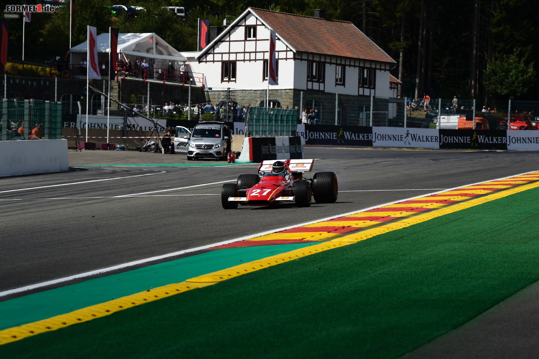 Der 312B mit Ickx' legendärer Startnummer 27 rollte zwei Stunden vor Rennstart bei bestem Wetter, aber mit Regenreifen über die Ardennen-Achterbahn. Der 71-Jährige ließ es sichtlich ruhig angehen, genoss aber die Ausfahrt mit seinem alten Dienstwagen offenbar genauso wie das Publikum.