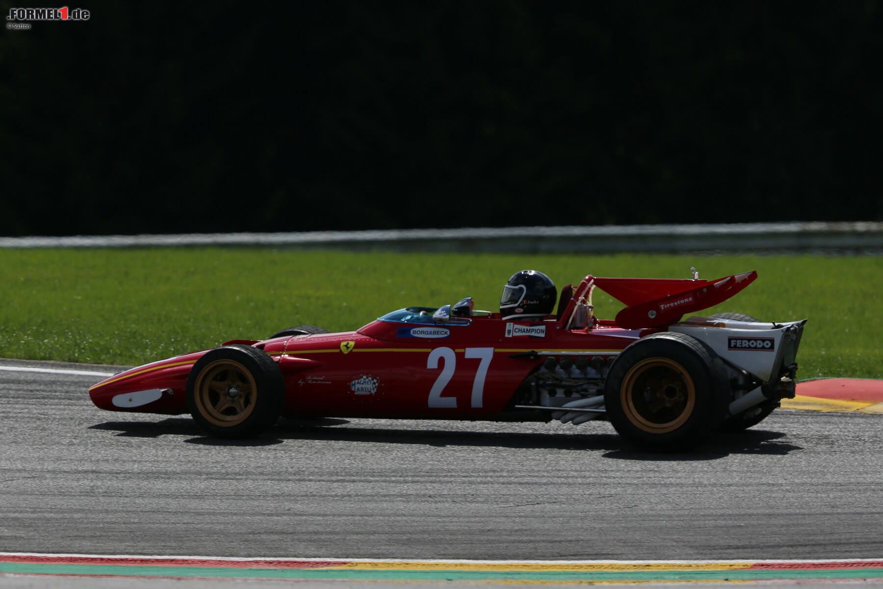 Der 312B mit Ickx' legendärer Startnummer 27 rollte zwei Stunden vor Rennstart bei bestem Wetter, aber mit Regenreifen über die Ardennen-Achterbahn. Der 71-Jährige ließ es sichtlich ruhig angehen, genoss aber die Ausfahrt mit seinem alten Dienstwagen offenbar genauso wie das Publikum.