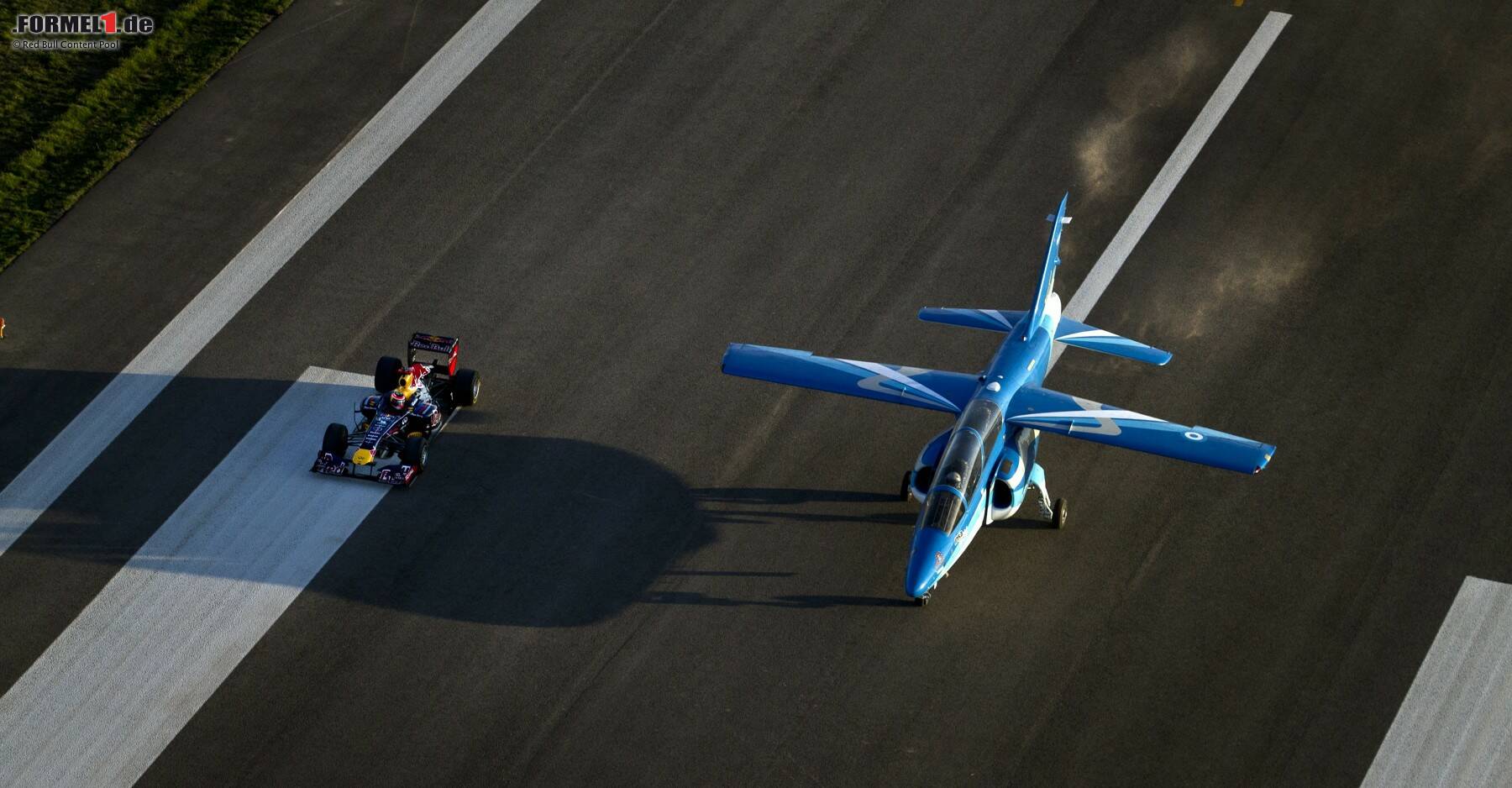 Eben dieser wurde in einer logistischen Meisterleistung zu einer "Donut-Plattform" für den 13-fachen Grand-Prix-Sieger David Coulthard umfunktioniert. Der Red Bull RB7 wurde mit einem Kran auf die Plattform gehoben. Dann durfte "DC" richtig qualmen lassen - sicher eine der spektakuläreren Aktionen des Red-Bull-Showrun-Teams.