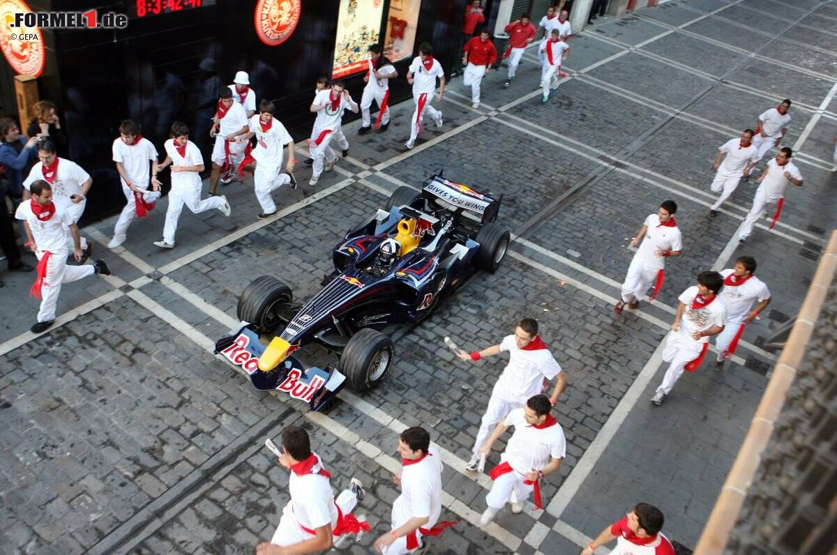 Da darf auf keinen Fall was schiefgehen: David Coulthard absolviert mit dem Red Bull RB7 Donuts in 200 Metern Höhe auf einem Wolkenkratzer in Miami
