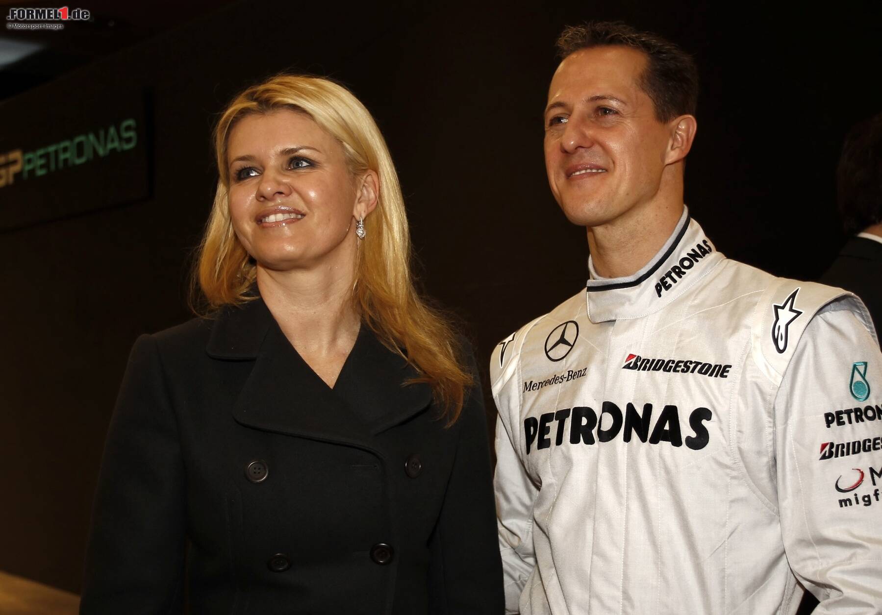 Corinna und Michael Schumacher lernten sich 1991 kennen. Vier Jahre später läuteten die Hochzeitsglocken. Die gelernte Bürokauffrau und der Formel-1-Rekordweltmeister haben zusammen zwei Kinder. Sohn Mick Schumacher wurde 2018 Formel-3-Europameister.