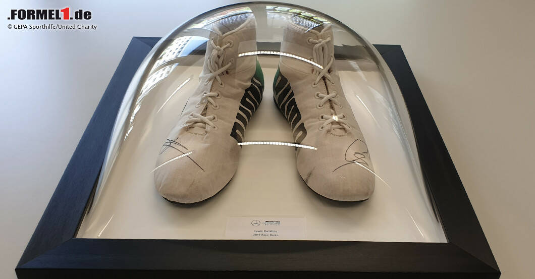 Motorsportfans und Sammler können bis zum 13. Mai ihre Gebote unter www.unitedcharity.de abgeben und sich die signierten, edel in einer Glaskuppel präsentierten Schuhe sichern. Mit der Auktion unterstützt der Mercedes-Fahrer die Österreichische Sporthilfe, denn sie erhält den Erlös ohne Abzug.