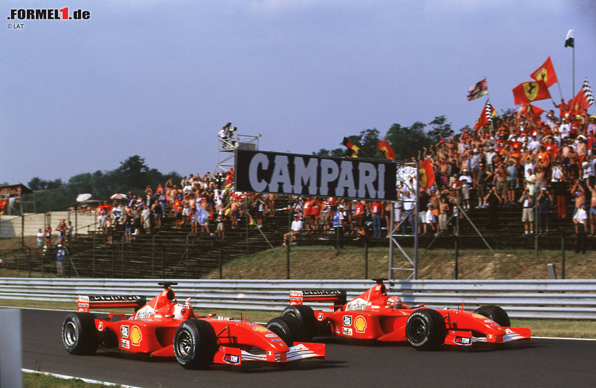 Ferrari F2001/F2001B: Das neue Auto für die Saison 2001 steht seinem Vorgänger in nichts nach - im Gegenteil. "Schumi" gewinnt den Titel bereits vier Rennen vor Saisonende, und die B-Version des Autos ist so gut, dass sie auch zu Beginn der Saison 2002 noch zweimal zum Einsatz kommt. Bilanz: 19 Rennen, 10 Siege, 12 Pole-Positions